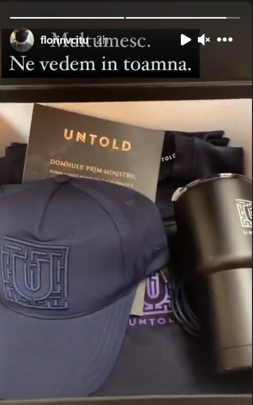 Florin Cîțu a anunțat recent că va participa la festivalul Untold. Premierul a postat pe contul personal de Instagram un videoclip în care prezintă un pachet primit de la organizatorii festivalului, care conține obiecte personalizate cu logo-ul Untold.