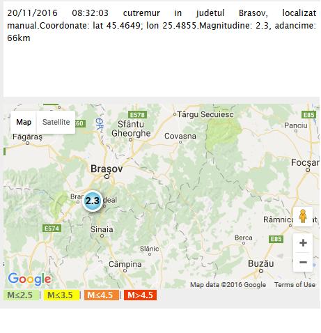 Un cutremur cu magnitudinea de 2,3 grade pe scara Richter s-a produs duminică la ora locală 08.32, în judeţul Brașov, potrivit Institutului Naţional de Cercetare-Dezvoltare pentru Fizica Pământului (INFP).
