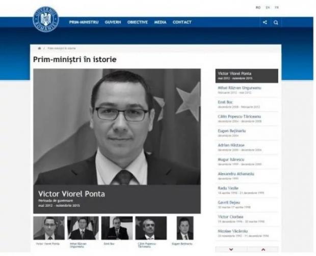 Pe site-ul Guvernului, ultimul premier, înainte de Sorin Grindeanu, este Victor Ponta, care a demisinat pe 4 noiembrie 2015.