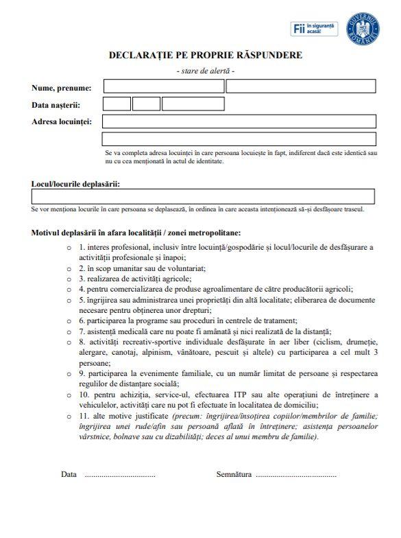 Potrivit noii declarații, iată care sunt motivele pentru care avem voie să ieșim din localitate.