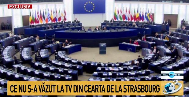 Andreea Sava a difuzat, în cadrul emisiunii "Descoperiți", imagini de la dezbaterea de la Strasbourg privind justiția din România.