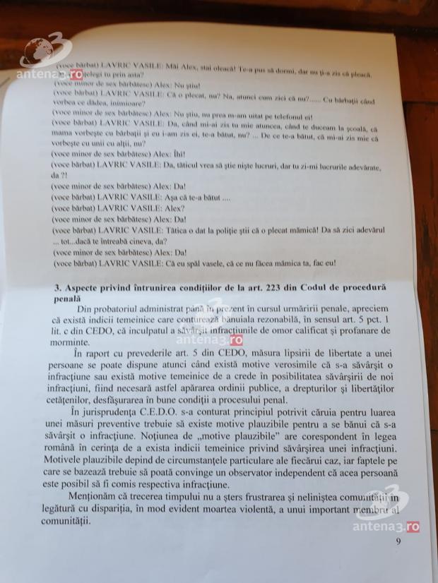 "În 10 iunie 2020, ora 23.38, suma de 3.000 de lei este retrasă de la un bancomat din Rădăuţi, de pe cardul bancar al mamei victimei. Acest card a fost, în ultimele luni, în posesia lui Lavric Vasile, după cum rezultă din analiza coroborată a listingurilor telefonice, a extraselor bancare şi a înregistrărilor din camere de supreveghere video de la bancomat şi evită să menţioneze în declaraţia sa acestui card bancar sau faptul că l-ar fi folosit (...)", au mai arătat procurorii.