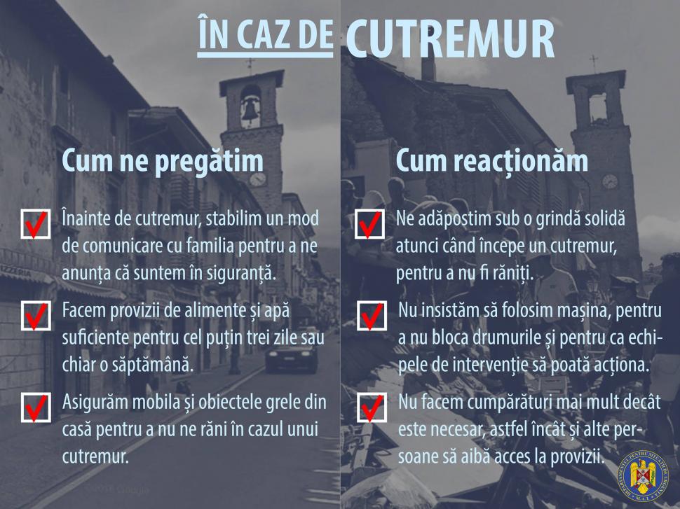„Cutremurul a avut o magnitudine de 5,8 şi s-a produs la o adâncime de 151 de kilometri, intensitatea în epicentru fiind 6, una destul de mare, pentru că s-a simţit destul de bine şi la Bucureşti. Aceasta este ultima revizuire. Cutremurul face parte din activitatea seismică normală a zonei Vrancei. Ultimele cutremure cu o magnitudine de peste 5 s-au produs în 2016, în septembrie şi decembrie, tot de 5,8 grade pe Richter, iar în 2018, acesta este cel mai mare. Nu mai aşteptăm replici. De obicei la cutremurele de adâncimea aceasta nu prea sunt replici şi dacă sunt, ele sunt mult mai mici. În Vrancea nu sunt replici aşa cum sunt la cutremurele de suprafaţă. E important că nu s-a produs un seism de magnitudine mai mare”, a precizat Ionescu.