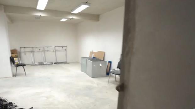 Într-adevăr, așa este. După o tranziție pe niște scări cufundate în beznă, o ușă metalică permite intrarea într-o sală destul de vastă, dar goală.