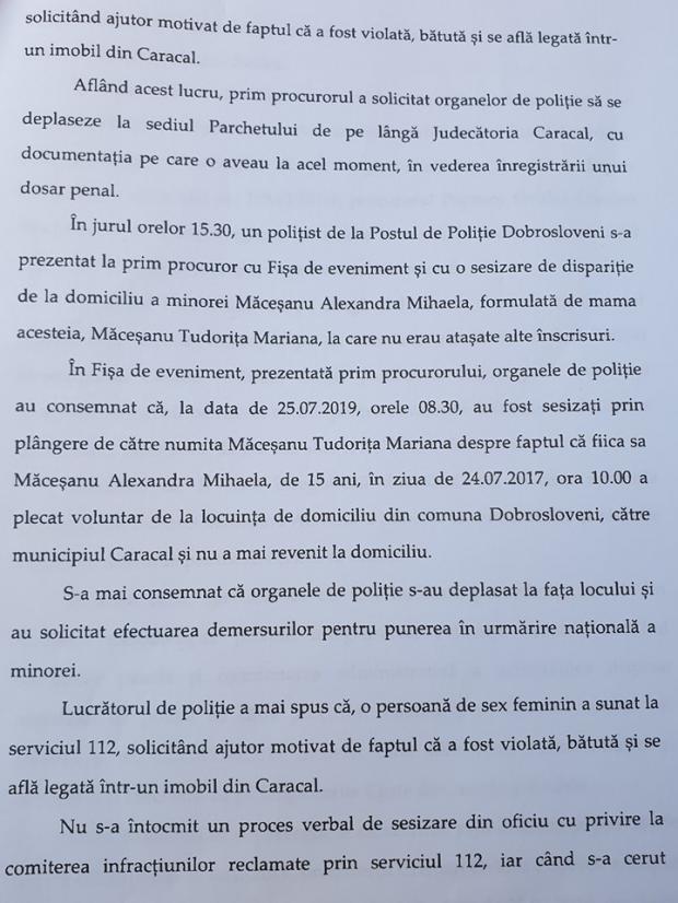 Parchetul Caracal NU stia nimic, politia nu raportase violul, sechestrarea, bataia la parchet local si culmea Parchetul Caracal deschide dosar penal abia la ora 1600 la cererea si insistenta procurorului DIICOT de la Craiova pt ca acesta se uitase la stiri...in timp ce procurorii din Olt nu aveau nici o treaba desi aveau inregistrarile 112. Si CULMEA politia Caracal raporteaza la parchet disparitia si atrocitatile abia la ora 1530 joi!!!", a scris Alexandru Cumpănașu pe Facebook.