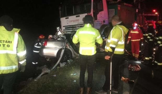 Şoferul camionului le-a declarat poliţiştilor că autoturismul circula cu viteză şi, la un moment dat, într-o curbă uşoară la dreapta, a pătruns pe contrasens şi apoi a intrat frontal în camion.