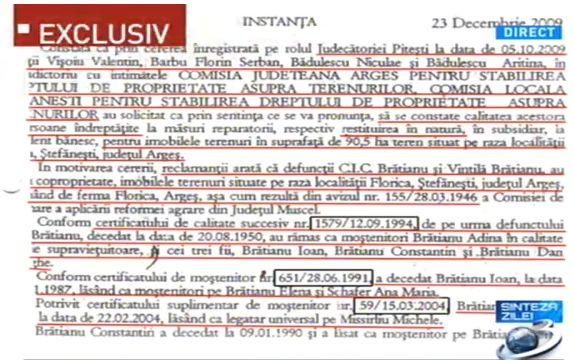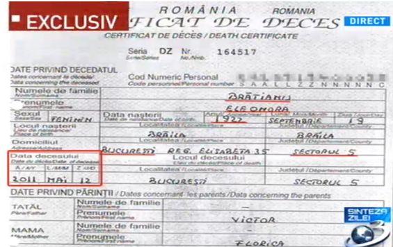 Mihai Gâdea a prezentat, în direct, la Sinteza Zilei, certificatul de deces al Eleonorei Brătianu.