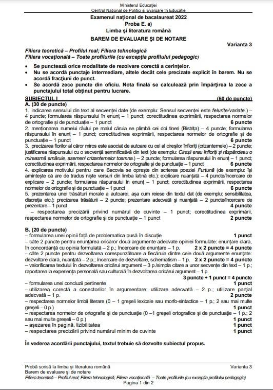 - 17 august 2022: Proba obligatorie a profilului — proba E.c) — proba scrisă