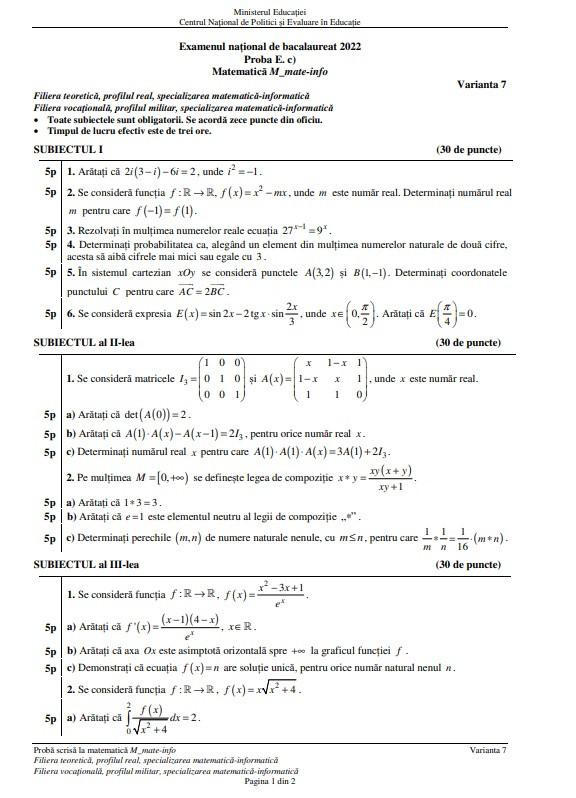 - 17 august 2022: Proba obligatorie a profilului — proba E.c) — proba scrisă
