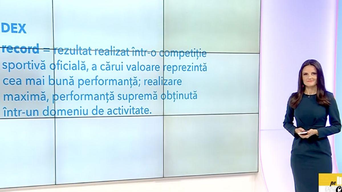 ”Tresor de la langue francaise” precizează 3 sensuri: recordul e o performantă sportivă, un rezultat superior tuturor celor înregistrate până la un moment dat într-un domeniu și ceva ce depășește tot ce a fost până atunci: cifră record, viteză record, prezentă record. Atenție la sensul al treilea: nu e ceva neapărat pozitiv. Asta în franceză.