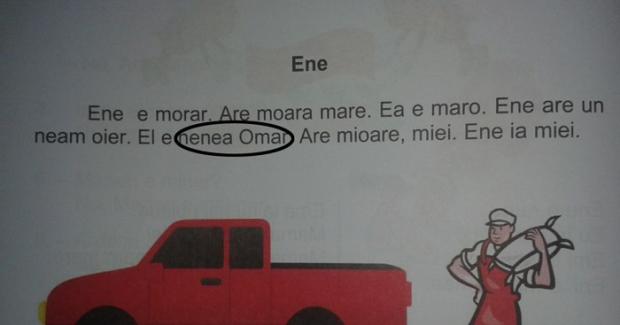 În auxiliarele de clasa I, numele proprii românești par să dispară încet-încet, pentru a le face loc celor arăbești, precum ”nenea Omar”. Cel puțin asta reiese dintr-o copie a cărții postată de vranceamedia.ro.