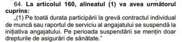 Concret, a fost modificată Legea 367/2022, iar la articolul 160, alineatul 1 a fost introdusă o cerere a angajatului aflat în grevă pentru suspendarea contractului de muncă. Până acum această suspendare era una de drept, fără să fie la inițiativa angajatului.