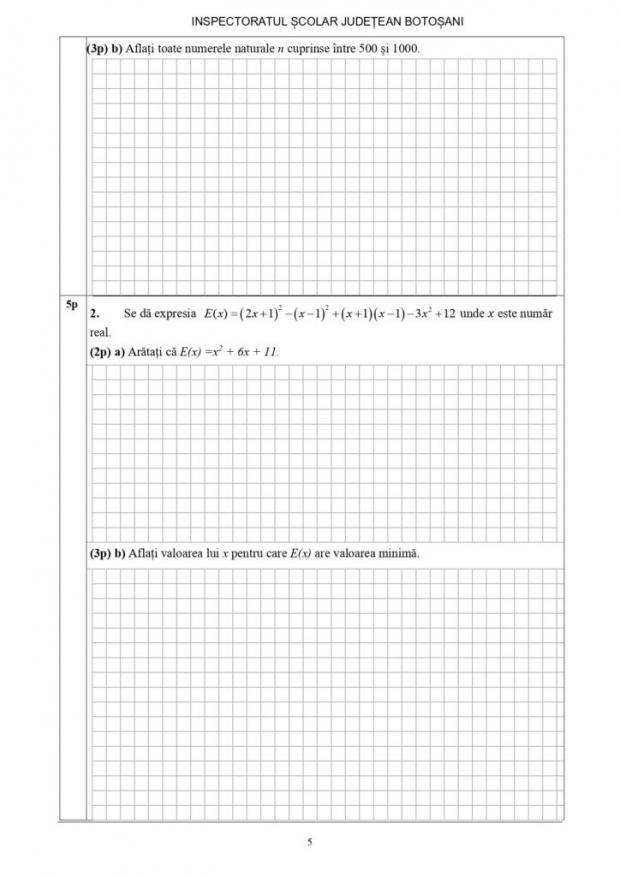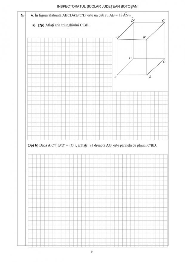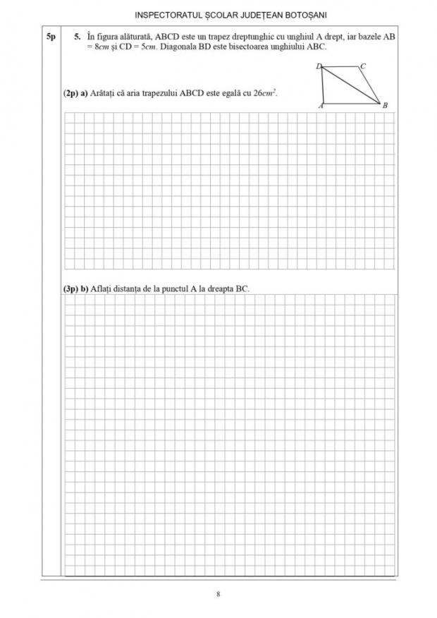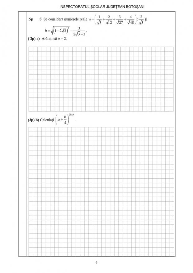Subiectele susținute de către elevii claselor a VIII-a pentru proba scrisă la Matematică, de vineri, 20 ianuarie, a simulării Evaluării Naționale 2023 din județul Botoșani, potrivit edupedu.ro
