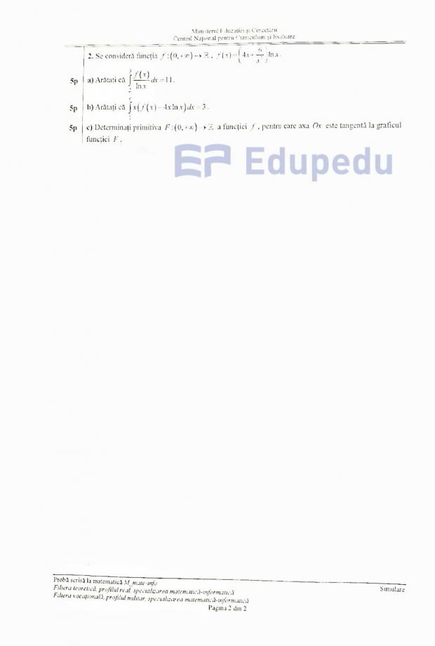 Subiecte Matematică, specializarea Mate-Info