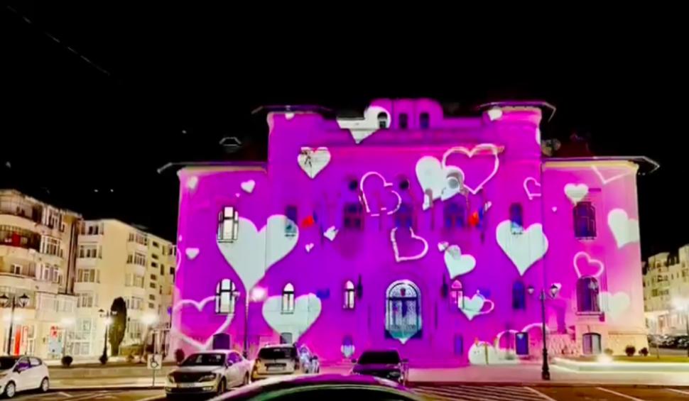 Este doar prima sărbătoare în care clădirea Primăriei arată așa. Primărița Elena Lasconi a spus că și de Dragobete va lumina Primăria. Dar, va folosi proiectoarele și de Paște și pentru sărbătorile de iarnă.