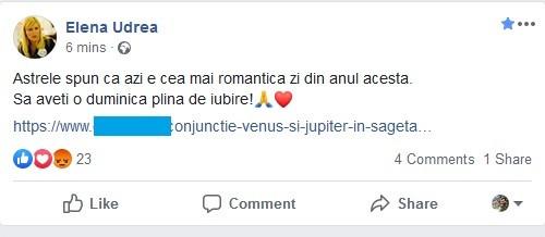 Să aveti o duminică plină de iubire!", a scris Elena Udrea.