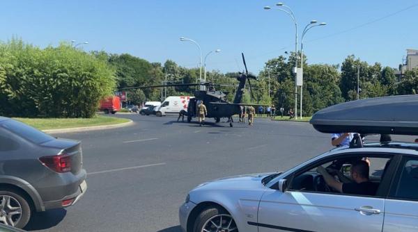 Elicopter UH-60 Black Hawk, aterizare de urgenţă în sensul giratoriu de la Aviatorilor