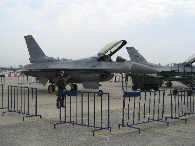 Competiţia lui Eurofighter estereprezentată de cele două avioane F16 Fighting Falcon, aduse laBucureşti de Lockhead Martin. De altfel, în cadrul ceremonieide deschidere a expoziţiei de la Romaero, acestea au efectuat şi odemonstraţie aeriană, la manşa lor aflându-se piloţi dincadrul Forţelor Aeriene Americane.