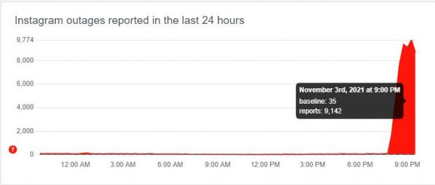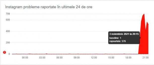 În SUA, de pildă, în jurul orei 21 (ora României), se înregistrat un vârf de peste 9.100 de incidente implicând funcționalitatea Instagram, comparativ cu o valoare de referință de doar 35 de incidente.