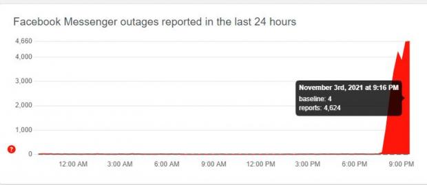 Mesageria de Facebook era, de asemenea, afectată serios în SUA, cu peste 4.600 de incidente raportate în jurul orei 21 (ora României), la o valoare de referință de doar 4 incidente.