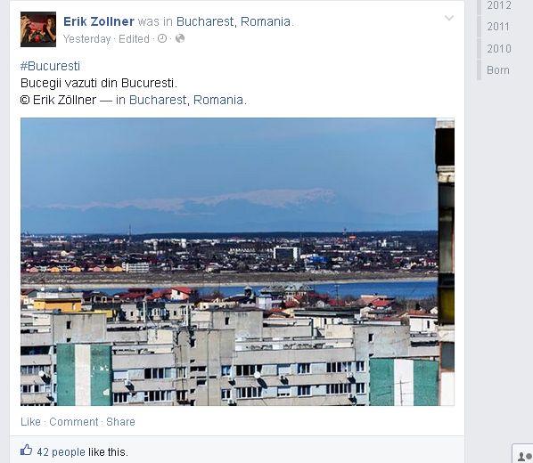 Erik Zollner, un pasionat de fotografie, a surprins din apartamentul său din cartierul Militari panorama munţilor Bucegi.