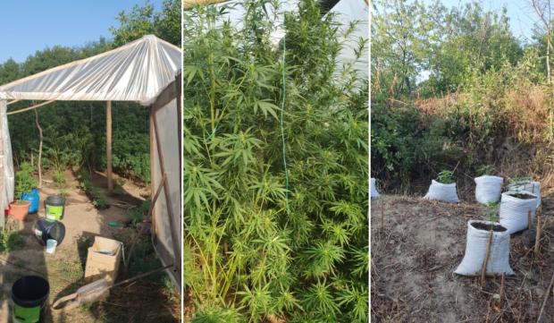 Cu ocazia efectuării perchezițiilor domiciliare, au fost identificate două culturi de cannabis indoor şi outdoor, precum şi droguri de mare risc.