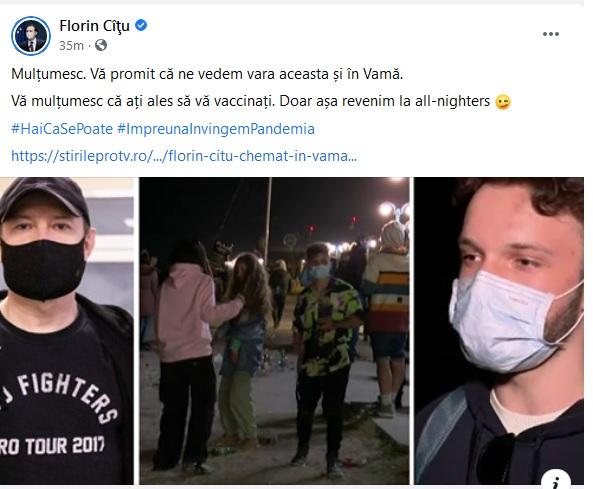 „Vă promit că ne vedem vara aceasta și în Vamă. Vă mulțumesc că ați ales să vă vaccinați. Doar așa revenim la all-nighters”, este mesajul postat de premier pe rețeaua de socializare.