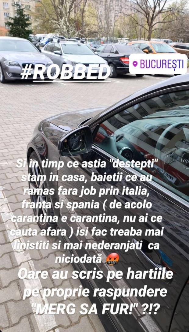 „Şi în timp ce ăştia ”deștepți” stăm în casă, băieţii ce au rămas fără job prin Italia, Franţa şi Spania (acolo carantina e carantină, nu ai ce căuta afară) îşi fac treaba mai liniştiţi şi mai nederanjaţi ca niciodată. Oare au scris pe hârtiile pe proprie răspundere ”Merg să fur!?!? ”, a scris Adrian Popa pe Instagram.