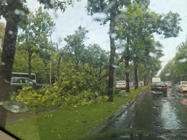 Furtuna din Capitală a făcut primele pagube. Mai mulți copaci au fost rupți pe Șoseaua Kiseleff, în zona Muzeului Satului.