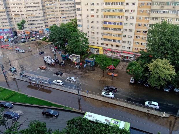 Apa a ajuns pe 50-60 de centimetri pe șoseaua Colentina, la intersecția cu strada Doamna Ghica. Mașinile reușesc să înainteze cu mare greutate.