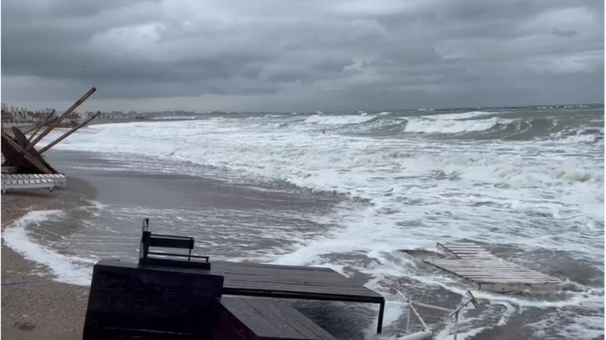 Nici vorbă de soare sau de turiștii care veneau altădată să facă plajă. Nu se poate face acest lucru, pentru că bate foarte tare vântul și plouă. De altfel, mai multe străzi din oraș au fost inundate, iar pompierii intervin și la această oră pentru scoaterea apei din diverse subsoluri, de clădiri sau din curțile oamenilor.