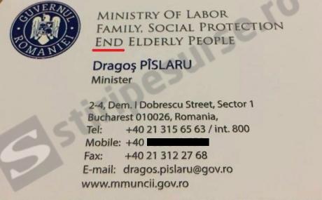 Cărţile de vizită în engleză ale ministrului Pîslaru aveau doar un cuvânt greşit, pe ele scrie „sfârşit" în loc de „şi", arată stiripesurse.ro.