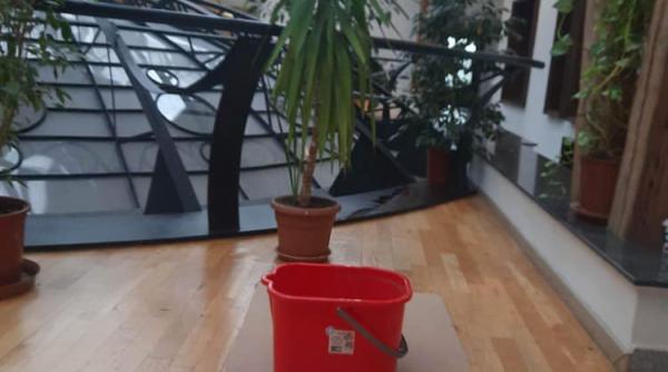 Și pentru că reparațiile nu sunt pe ordinea de zi a deputaților, soluția a apărut destul de repede - găleata în care se strânge apa.