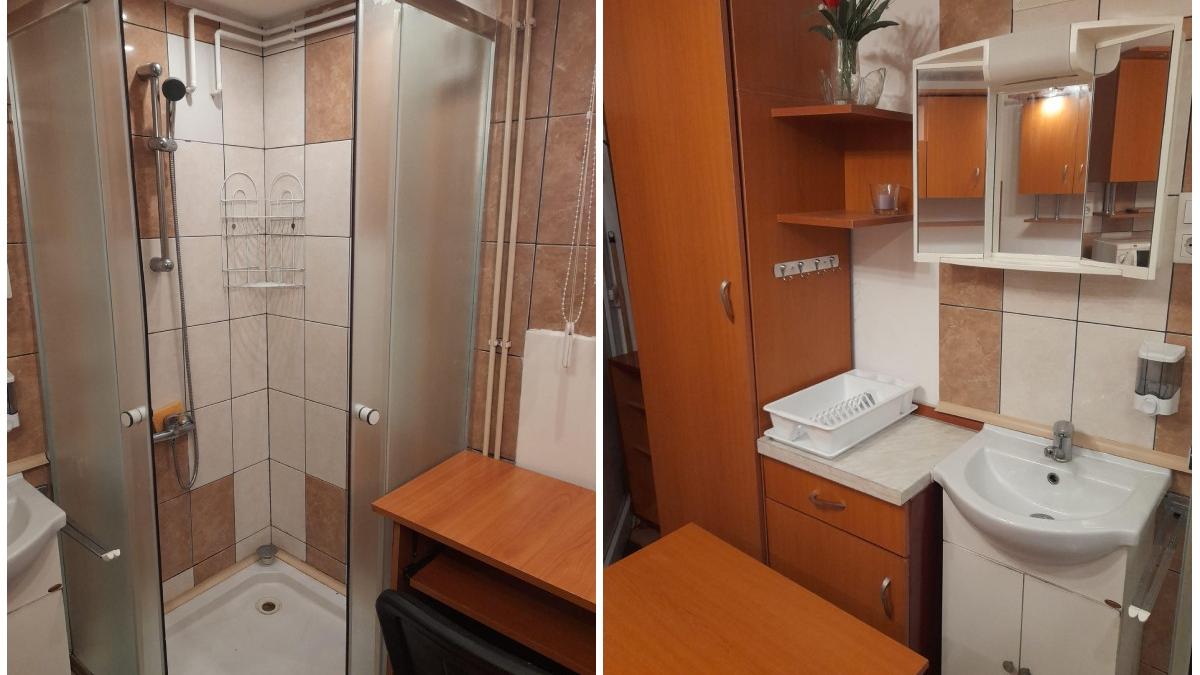 Patul este așezat lângă masă și chiuveta de bucătărie, fiind singura, de altfel. Mai mult decât atât, cabina de duș este aşezată lângă biroul viitorului chiriaş.