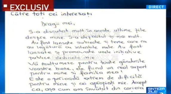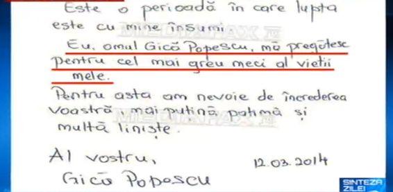 Iată conţinutul integral al scrisorii lui Gică Popescu: