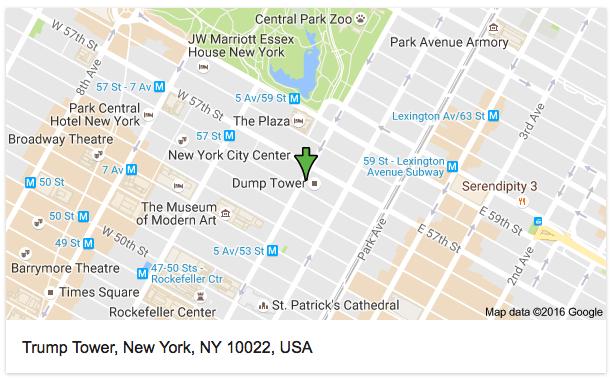 Turnul lui Donald Trump din New York a putut fi identificat pe Google maps, pentru câteva ore, sub numele de ”Dump Tower”, în loc de ”Trump Tower”.
