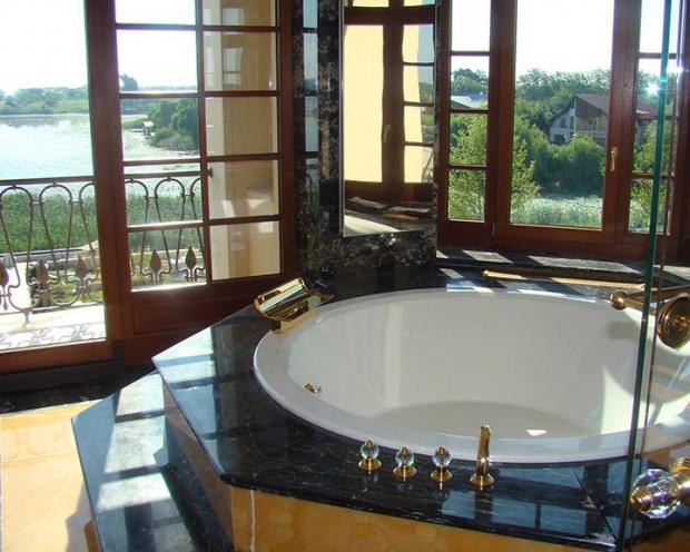Palatul dispune de un living imens, are piscină interioară, sală de sport, dar şi cramă.