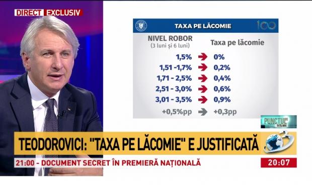 MInistrul Finanțelor, Eugen Teodorovici a explicat, marți la "Punctul de întâlnire" de ce este nevoie de o "taxă pe lăcomie" în România, mai exact un mod de a impozita profitul uriaș făcut de băncile din țara noastră.