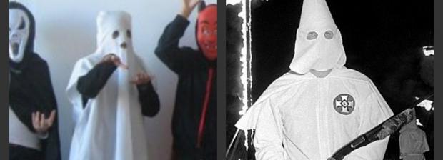 O scenă tragi-comică s-a petrecut la Școala "Nicolae Iorga" din Focșani. Acolo, profesoara Marlena Boldeanu a organizat o dezbatere între elevi despre influența mass-media asupra...elevilor. Deși unii au recunoscut că imaginile violente, cu cruzime și nedreptăți, "le creează discomfort psihic", profesoara le explica că trebuie să se detașeze de astfel de imagini, în timp ce un elev era îmbrăcat într-un costum ce seamănă leit cu cel al organizației rasiste, Klu-Klux-Klan, cunoscută pentru crimele împotriva negrilor dar și a oponenților politici. Lângă el era un coleg deghizat în diavol.