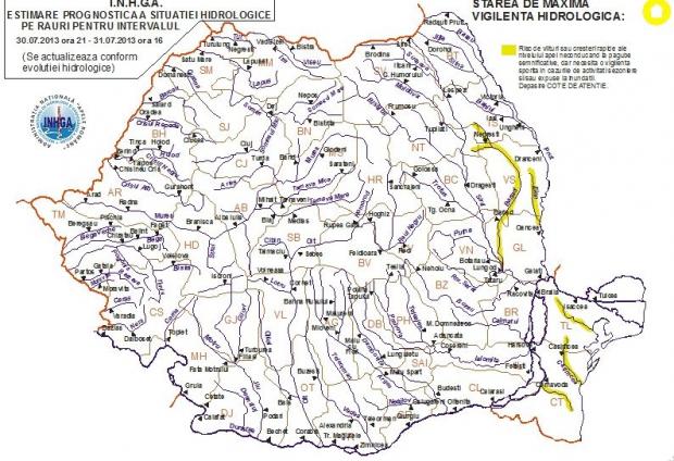 Râurile vizate de Codul Galben de inundaţii sunt: Bârlad (judeţele Iaşi, Vaslui, Galaţi), afluenţii Prutului inferior (judeţele Vaslui şi Galaţi) şi cele din Dobrogea (judeţele Tulcea şi Constanţa).