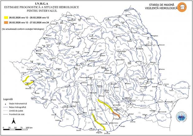 Institutul Naţional de Hidrologie şi Gospodărire a Apelor (INHGA) a actualizat, joi, atenţionarea hidrologică, având în vedere situaţia hidrometeorologică actuală şi prognoza meteorologică pentru următoarele 48 de ore, după ninsorile abundente din weekend.