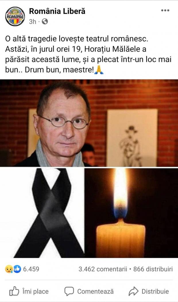 Vineri dimineață, o publicație locală anunța că Horațiu Mălăele a murit.