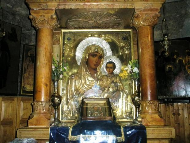 Icoana se află chiar desupra a ceea ce se spune că este mormântul Maicii Domnului şi este cunoscută ca făcătoare de minuni.