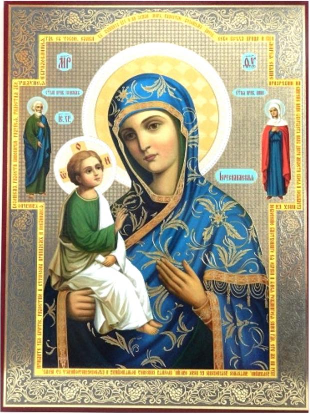 Maica Domnului, Pruncul Iisus, Ioachim şi Ana. Prima icoană este o reprezentare a Maicii Domnului cu pruncul Iisus, însoţita de-a stânga şi de-a dreapta de imaginea Sfinţilor Părinţi Ioachim şi Ana, cei care trupeşte i-au dat viaţă Mariei.