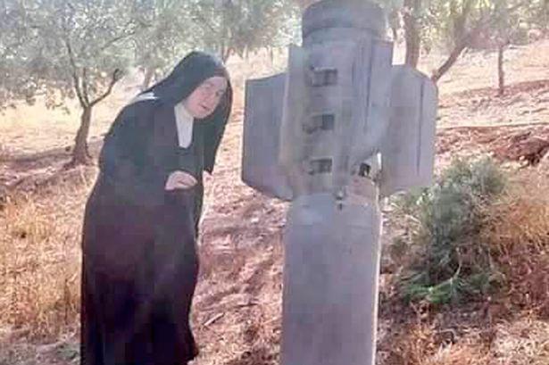 O imagine cu o călugăriță care inspectează o rachetă căzută în apropierea unei mănăstiri din Alep, Siria, a devenit virală pe Internet, scrie Mirror.