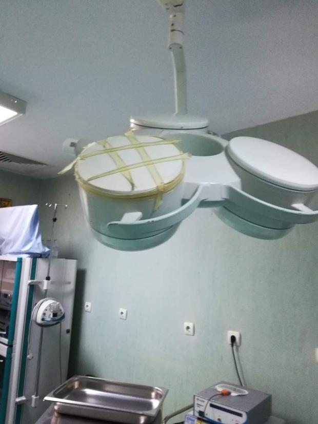 Iar o parte dintre aparatele esenţiale unei proceduri chirurgicale sunt lipite cu bandă adezivă pentru că riscă să se destrame.