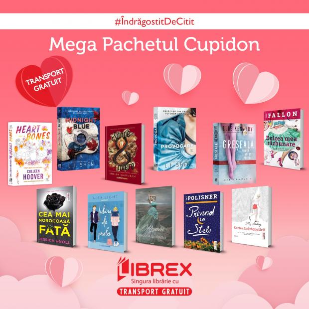 Pe lângă pachetele tematice, LIBREX îți mai propune și Mega Pachetul Cupidon. Set 11 Cărți, la un preț special. Ai șansa de a citi cele mai frumoase 11 volume de dragoste, de la autori consacrați ai genului, cum ar fi: Colleen Hoover, LJ Shen, Elle Kennedy și alții.