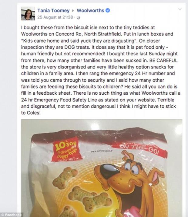 Femeia a povestit că a cumpărat din greșeală biscuiți pentru căței, după ce i-a găsit în imediata apropiere de gustările pentru copii.