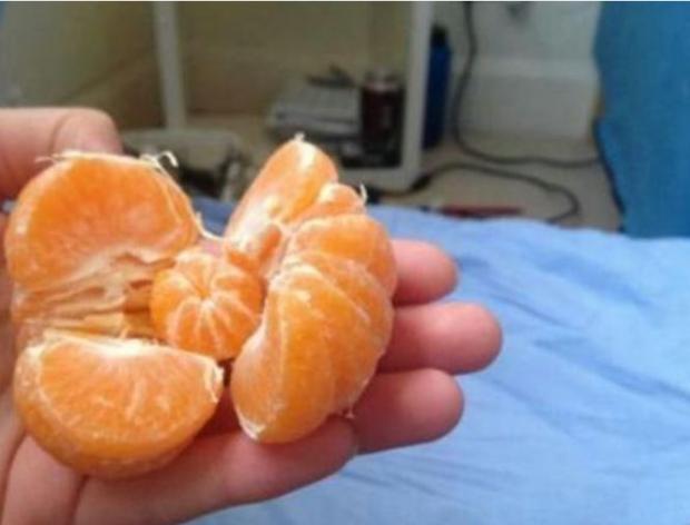 Imaginea inedită a fost surprinsă de un utilizator din Turcia și arată ce a găsit el într-o portocală.