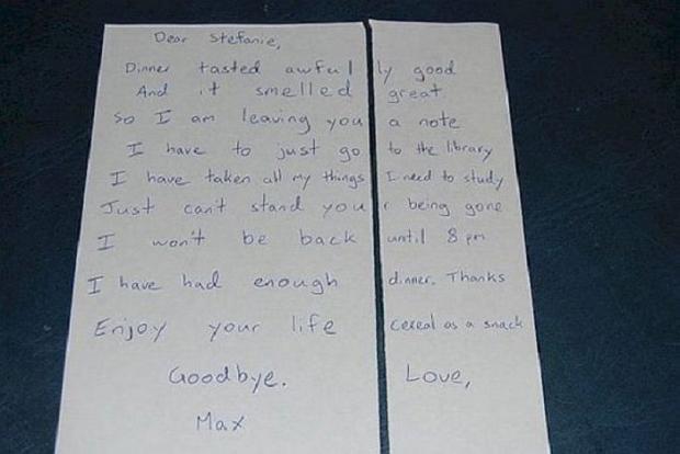 Când a venit acasă, primul lucru pe care femeia l-a văzut a fost biletul din bucătărie. După ce l-a citit,a început să plângă crezând ca relația lor s-a terminat.